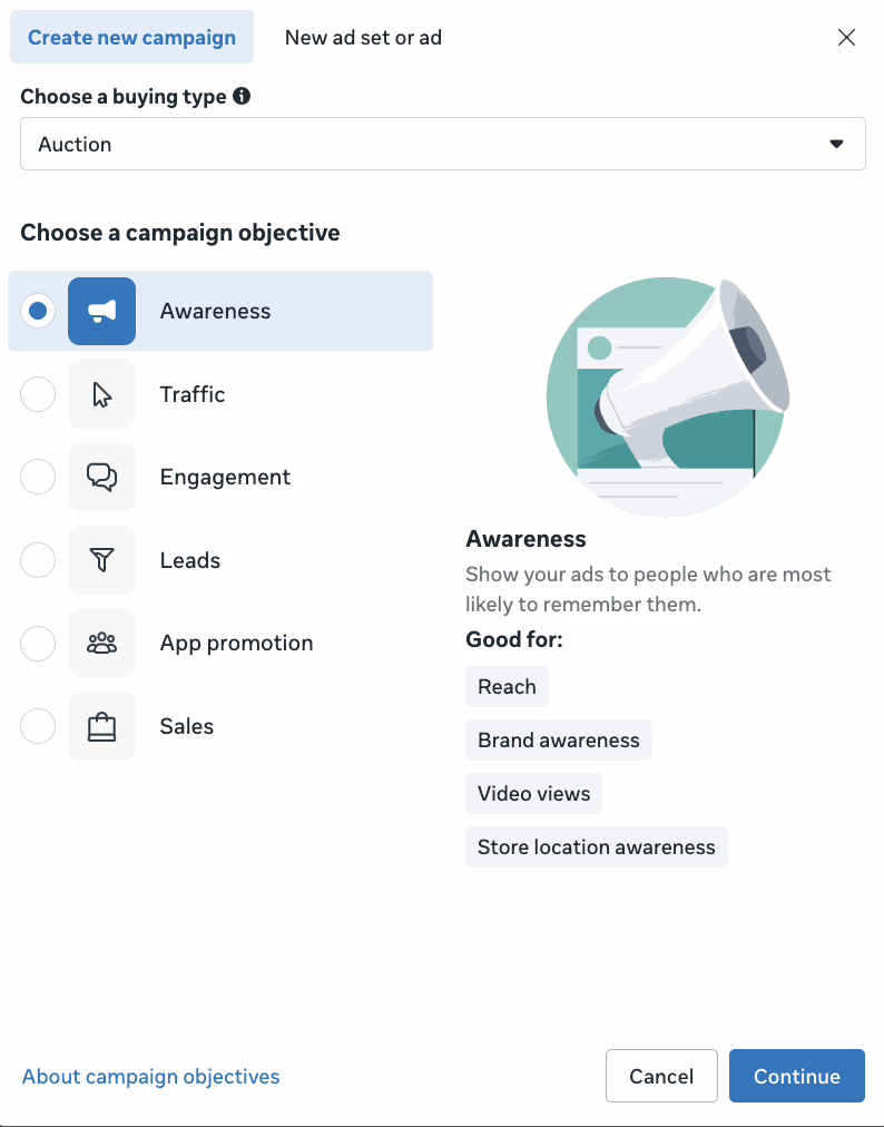 - 知名度 Awareness Show your ads to people who are most likely to remember them.Good for: