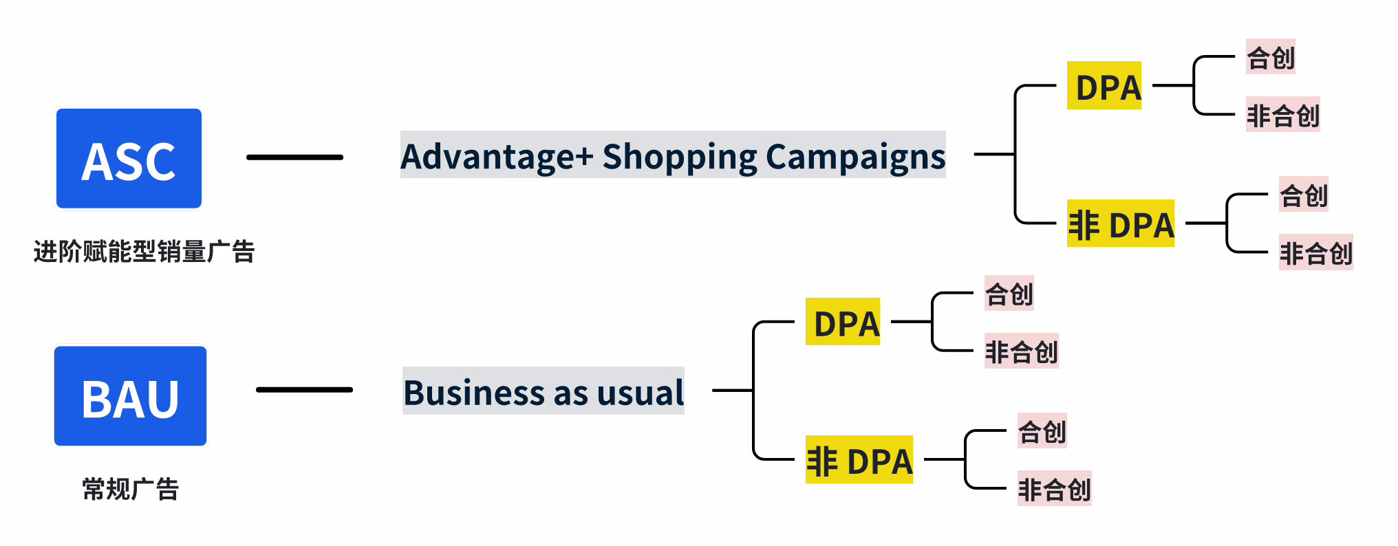 - DABA(Dynamic Ads Broad Audience):常规目录广告(兴趣词定位)