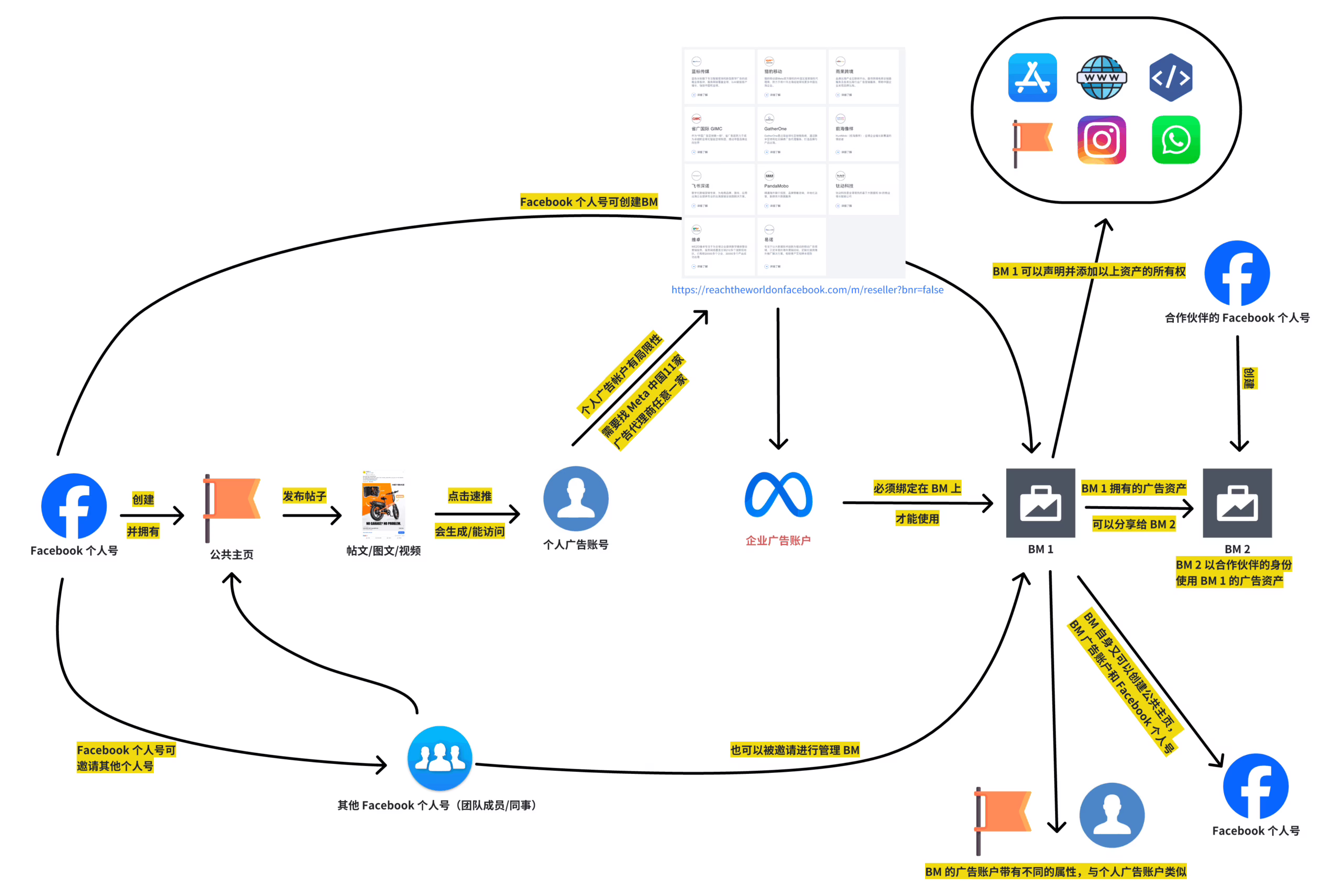 - 不同 BM 可以互相授权使用主页、像素等资产,以便协作